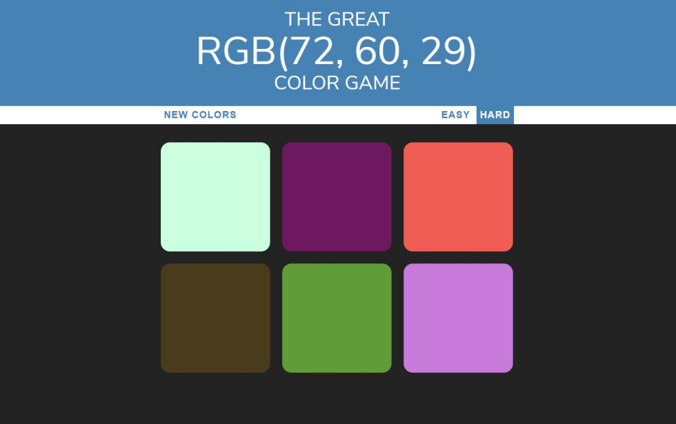 The RGB Color Game offers an entertaining way to learn RGB color values. Guess the correct colored box matching the displayed RGB code at the top. Created using vanilla JavaScript, HTML, CSS, and SASS for a fun learning experience.